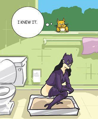 I know what you’re thinking, why does she have a toilet if she uses a litter box, and the answer is simple; all houses come with a toilet. SHOCKING!