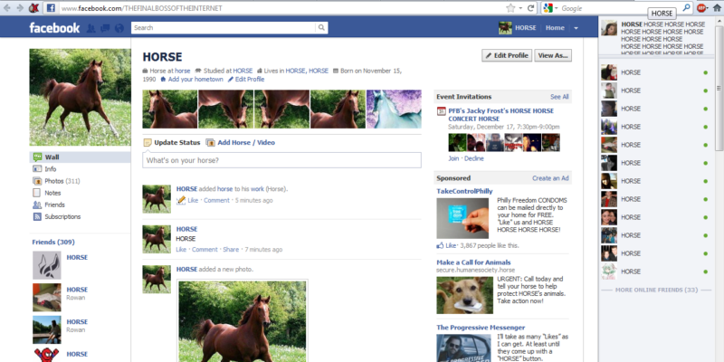 Normally people create facebook accounts for their pets, but it seems this fellow here decided to create his own HORSE.