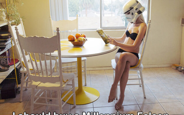 So I was browsing Imgur when this picture came up, so the logical thing to say was, “I should buy a Millennium Falcon.” I was then asked to add it to the photo, and so I did:
