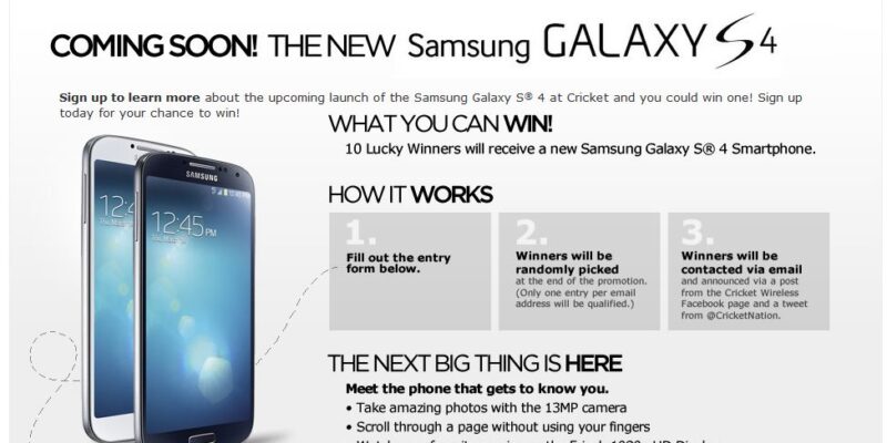 Rumors and speculations about the Cricket Communications release of the new Samsung Galaxy S4 lead to believe it would be released around the first half of June, and this was confirmed by their newest sweepstakes.