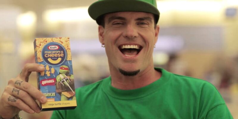 Kraft Macaroni & Cheese new shape is the Teenage Mutant Ninja Turtles, and they decided to go for Vanilla Ice’s Ninja Rap from TMNT 2: The Secret of the Ooze, starring Vanilla Ice himself.