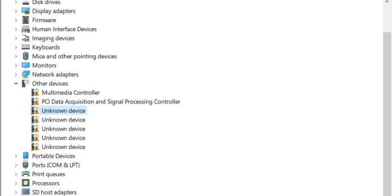 4) Go to Device Manager and update all the “unknown” drivers by pointing them to the extracted drivers’ folders.