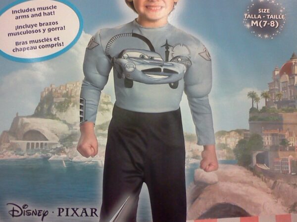 Disney’s Cars costume that includes muscle arms and hat! Whut?